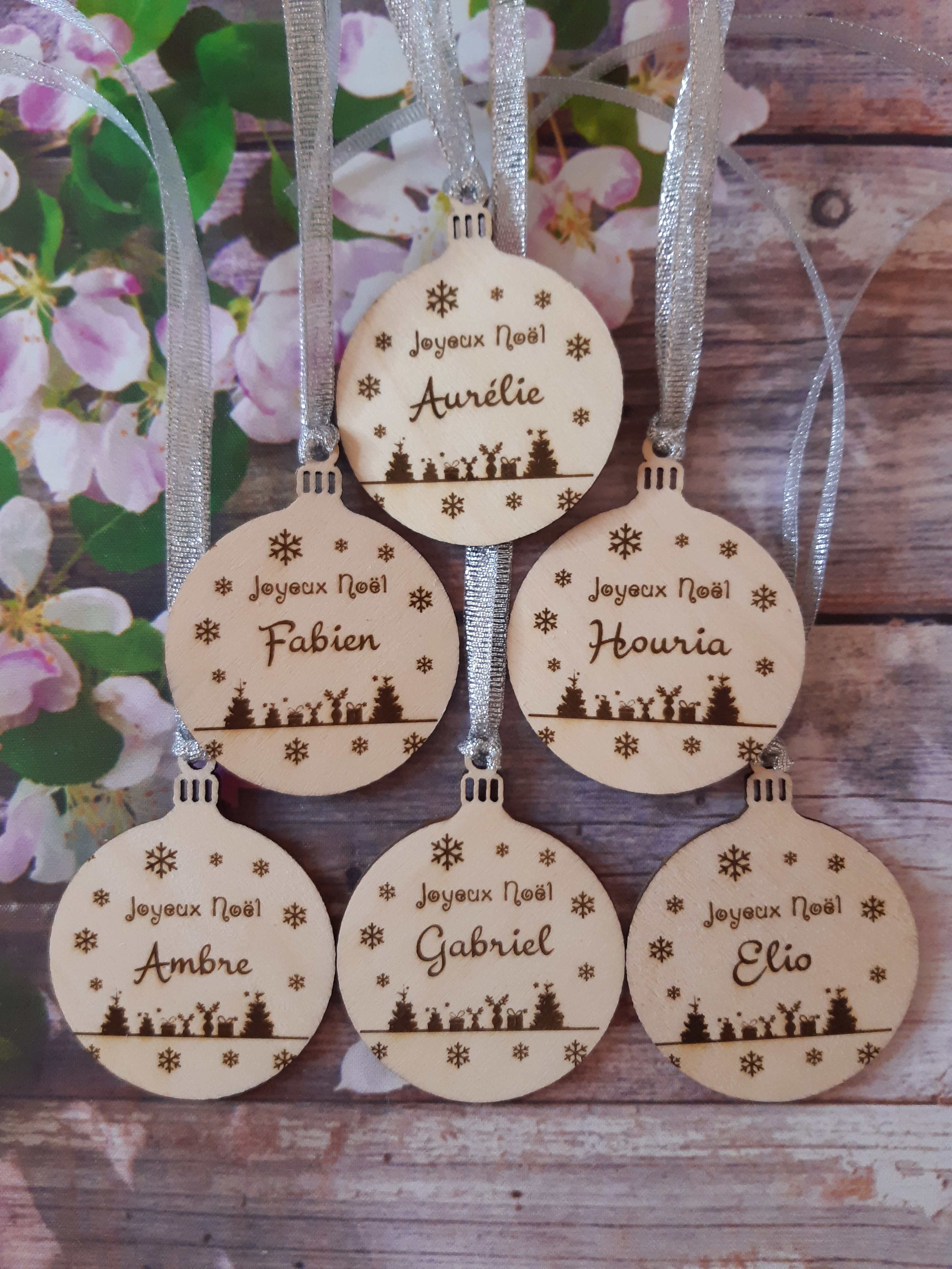 Ces jolies boules de Noël en bois plat personnalisées au prénom trouveront à coup sûr leur place dans votre sapin de Noël !