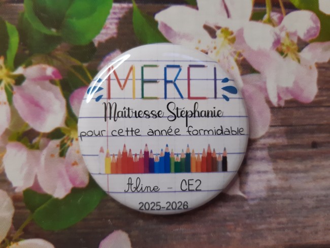 Magnet 56mm cadeau fin d'année entièrement personnalisable Prénoms, classe etc...
